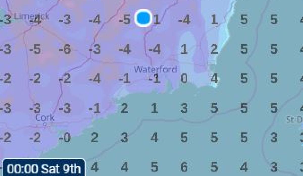 -5°C predicted in Kilkenny overnight (Picture: Met Éireann