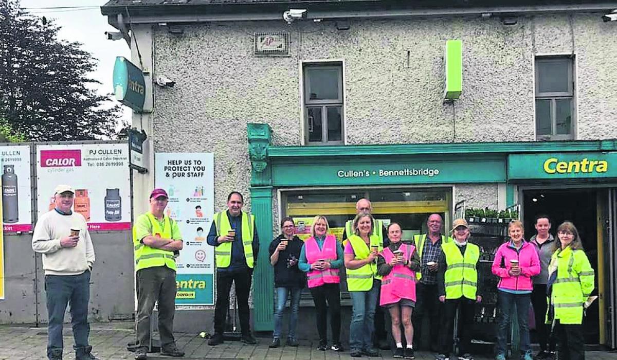 'Bridge Clean-up team sampling some well-earned refreshments afterwards courtesy of Cullen's Centra, Bennettsbridge