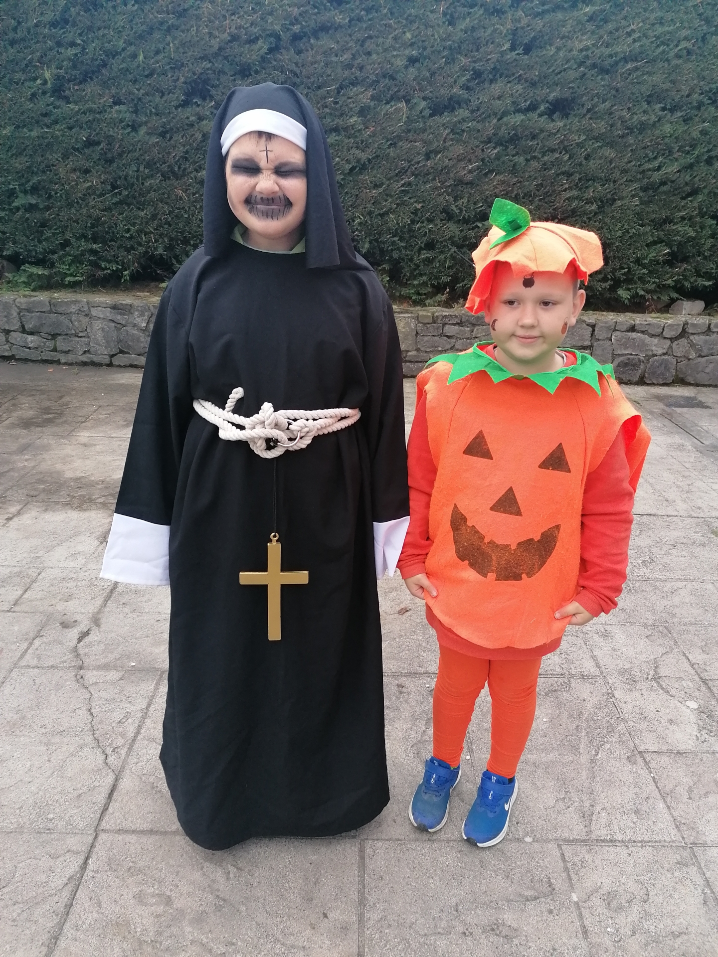 Jack and Charlie dressed up as a scary nun and a pumpkin