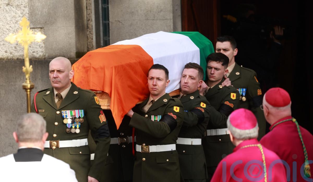 Full state funeral honours were accorded to Mr Bruton, with Irish soldiers carrying his coffin out of the church in Co Meath before it was taken on a gun carriage to the cemetery.