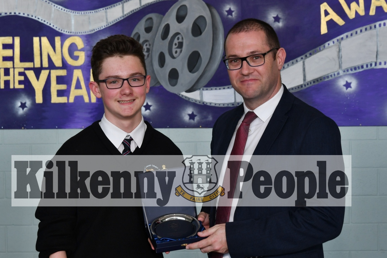 1st Year Academic Student: Jamie Power with Anthony Leahy, Principal.