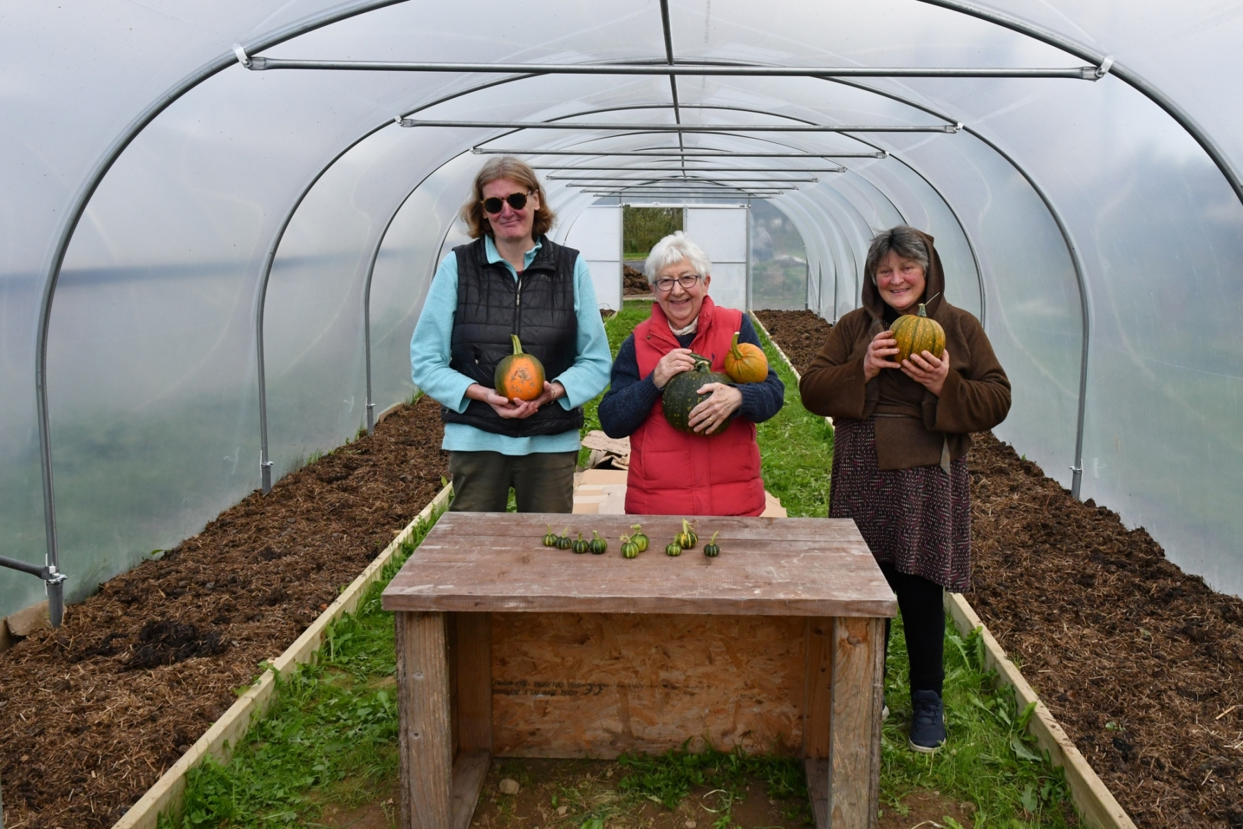 An autumnal harvest! Karen, Olivia and Catherine with a crop of pumpkins