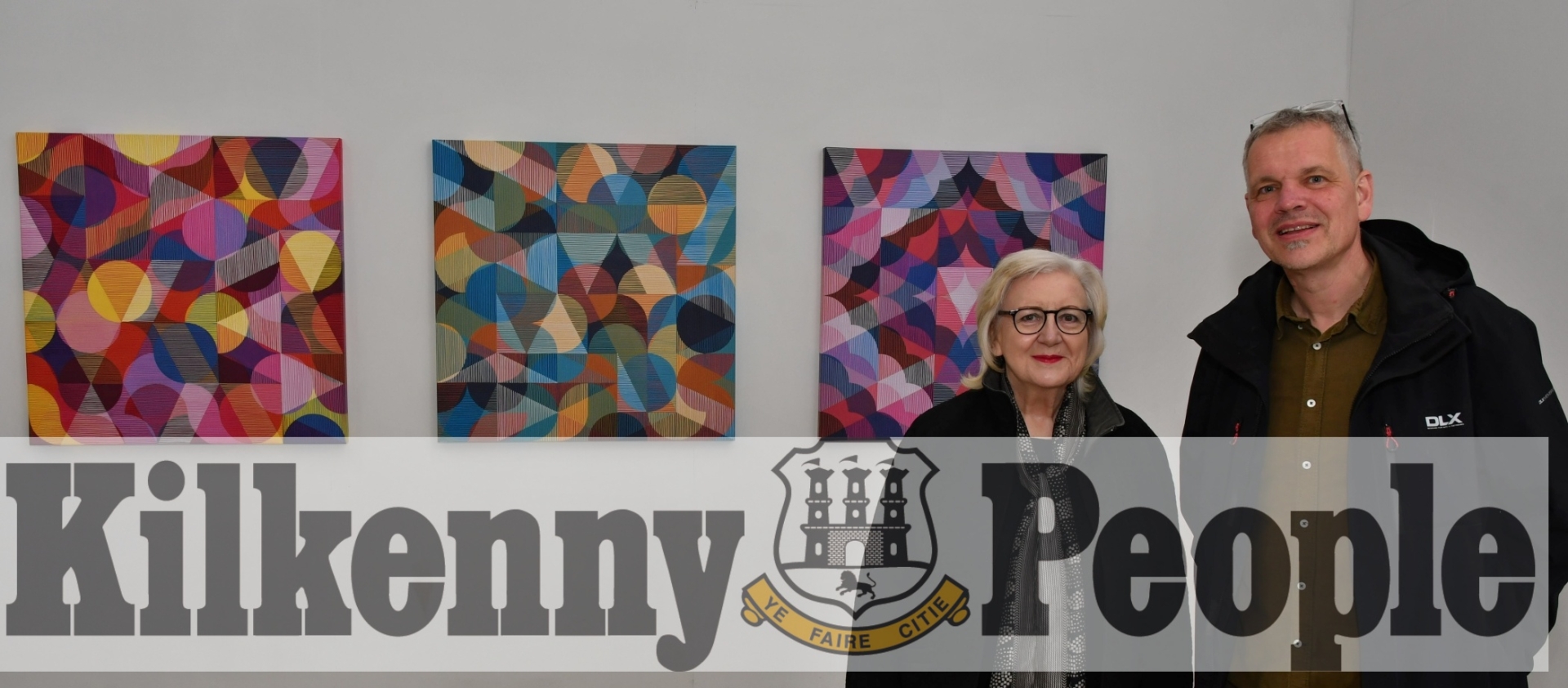 Anna O’Sullivan, Director of Butler Gallery, with Paul Bokslag, visual artist, at his Work In Progress exhibition in The Powerhouse