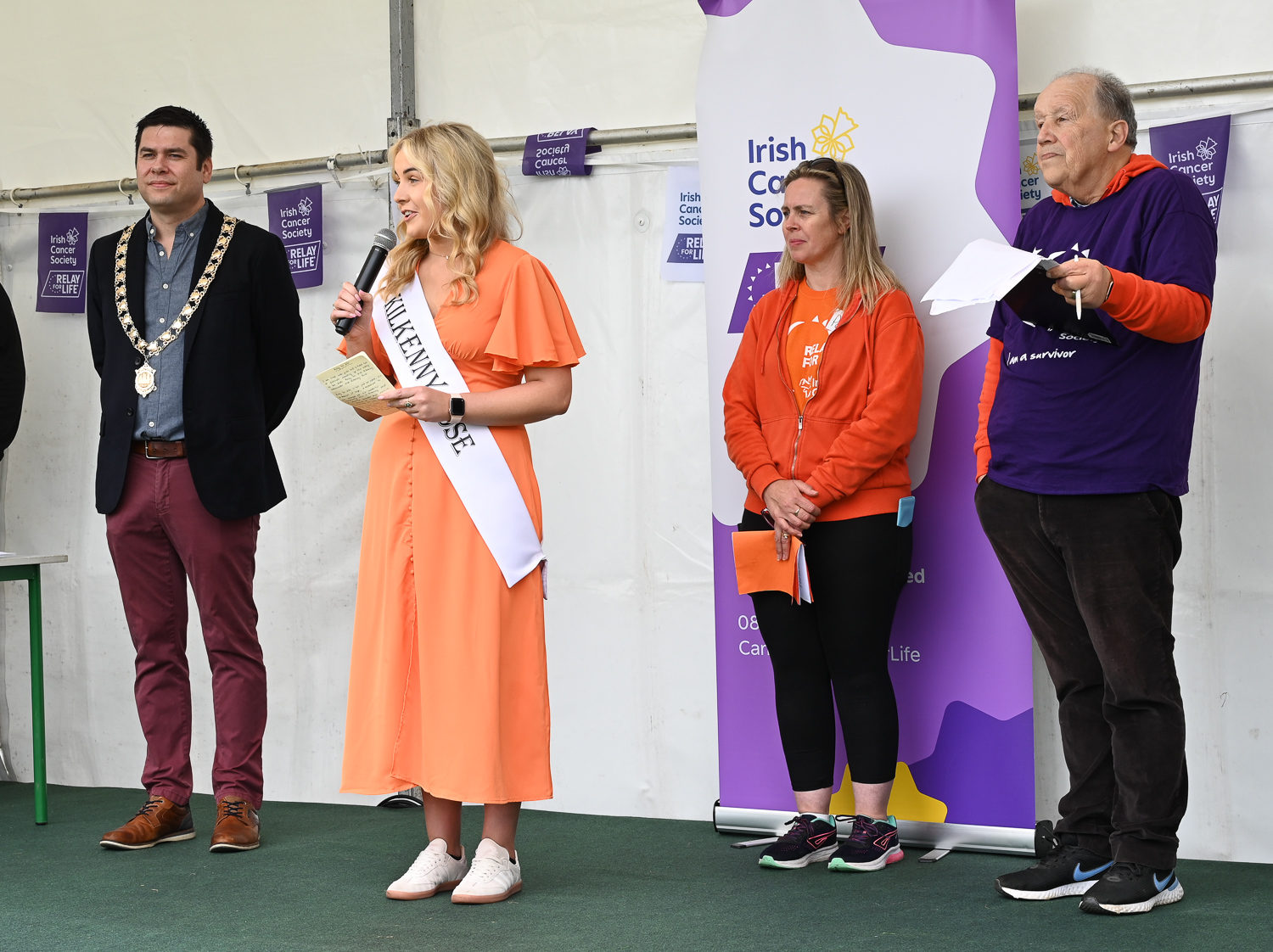 Mayor Andrew McGuinness, Lisa O’Rourke, the Kilkenny Rose, Chairperson of Kilkenny Relay for Life, Patsy Cummins and George Chandler.