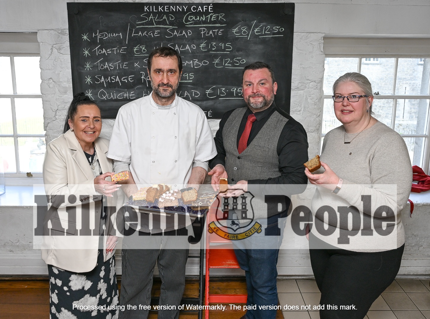 Alex Kotomkin and Emmet Lanigan of the Kilkenny Café, with Rotary members Tammy Brennan and Sian Moloughney, with a delicious selection of cakes for the International Women's day event. PICTURE Vicky Comerford