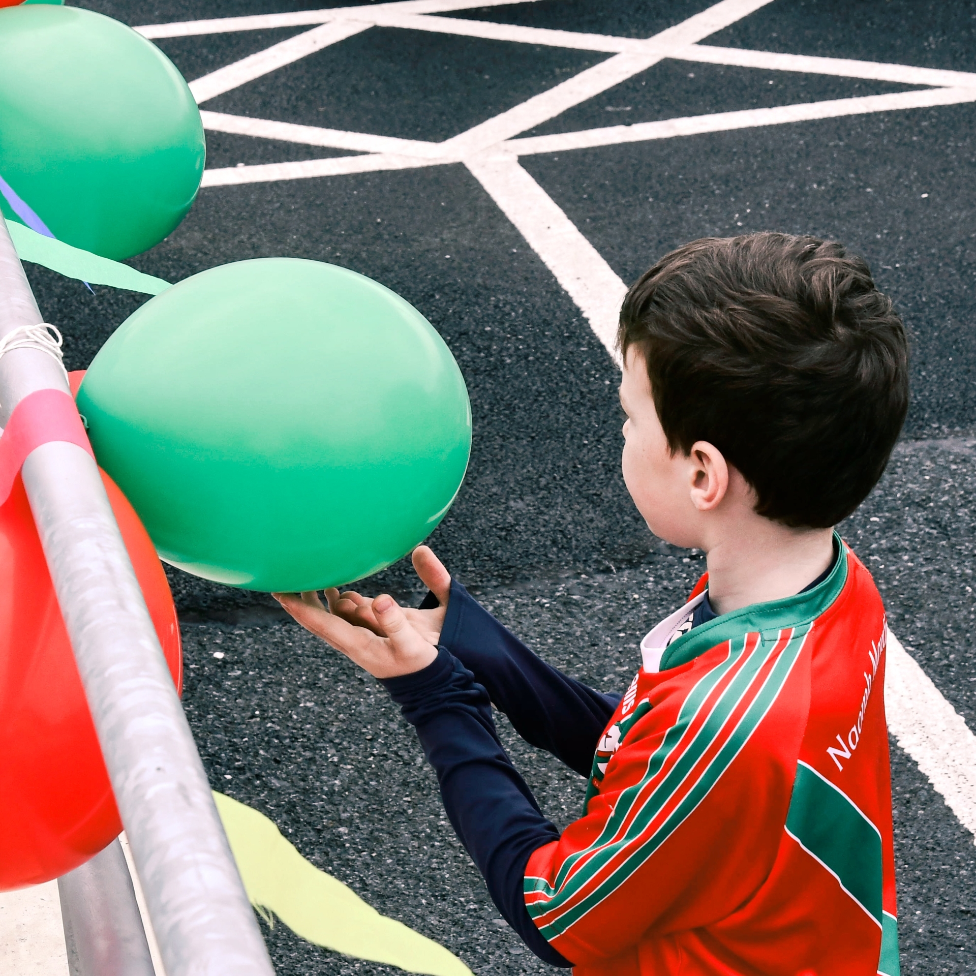 The young Mr. Hally checks that the balloons are correctly pressurised!