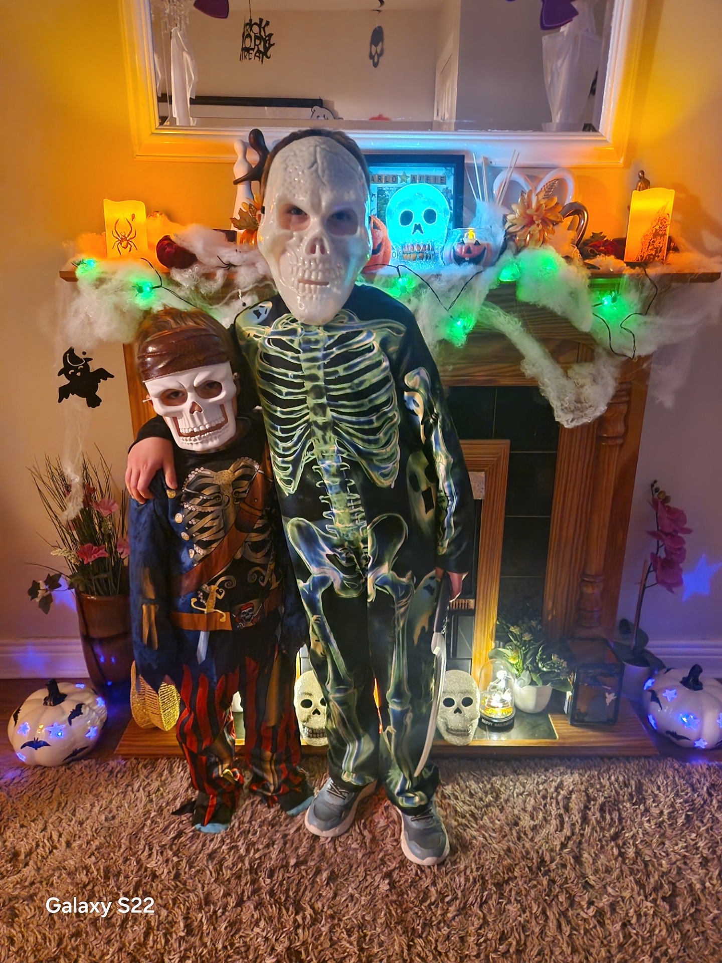 BELOW: Arlo (aged 4) and Alfie (aged 6) Johnson-Barcoe dressed as skeletons for Halloween