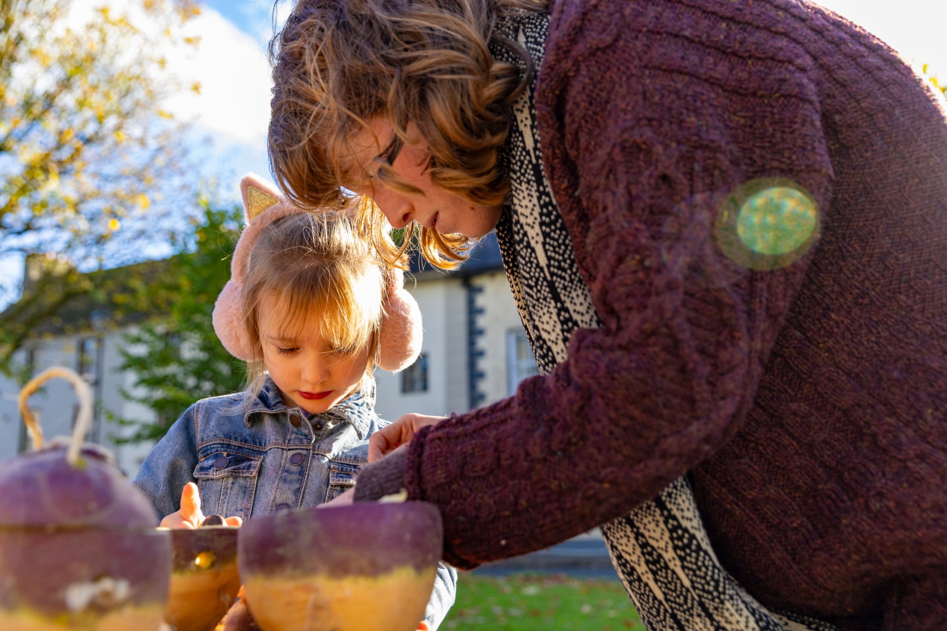 Samhain games and festivities kicked off in the square on Sunday with blue skies and sunshine welcoming visitors from near and far to the village. A packed programme of workshops, walks and storytelling took over various venues across the day.