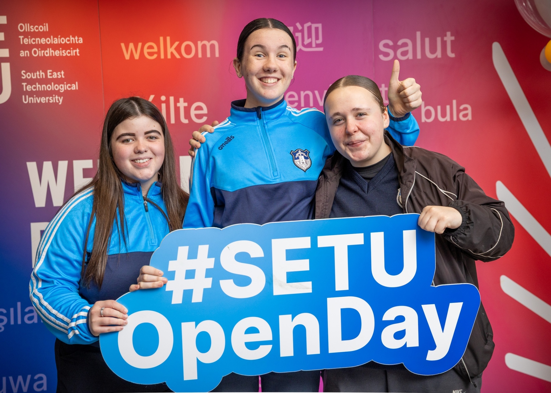 BELOW: Cora Keogh Fortune, Laura Nolan and Laura Gill, students of Selskar College, Wexford attended South East Technological University’s Open Day at the Cork Road Campus.