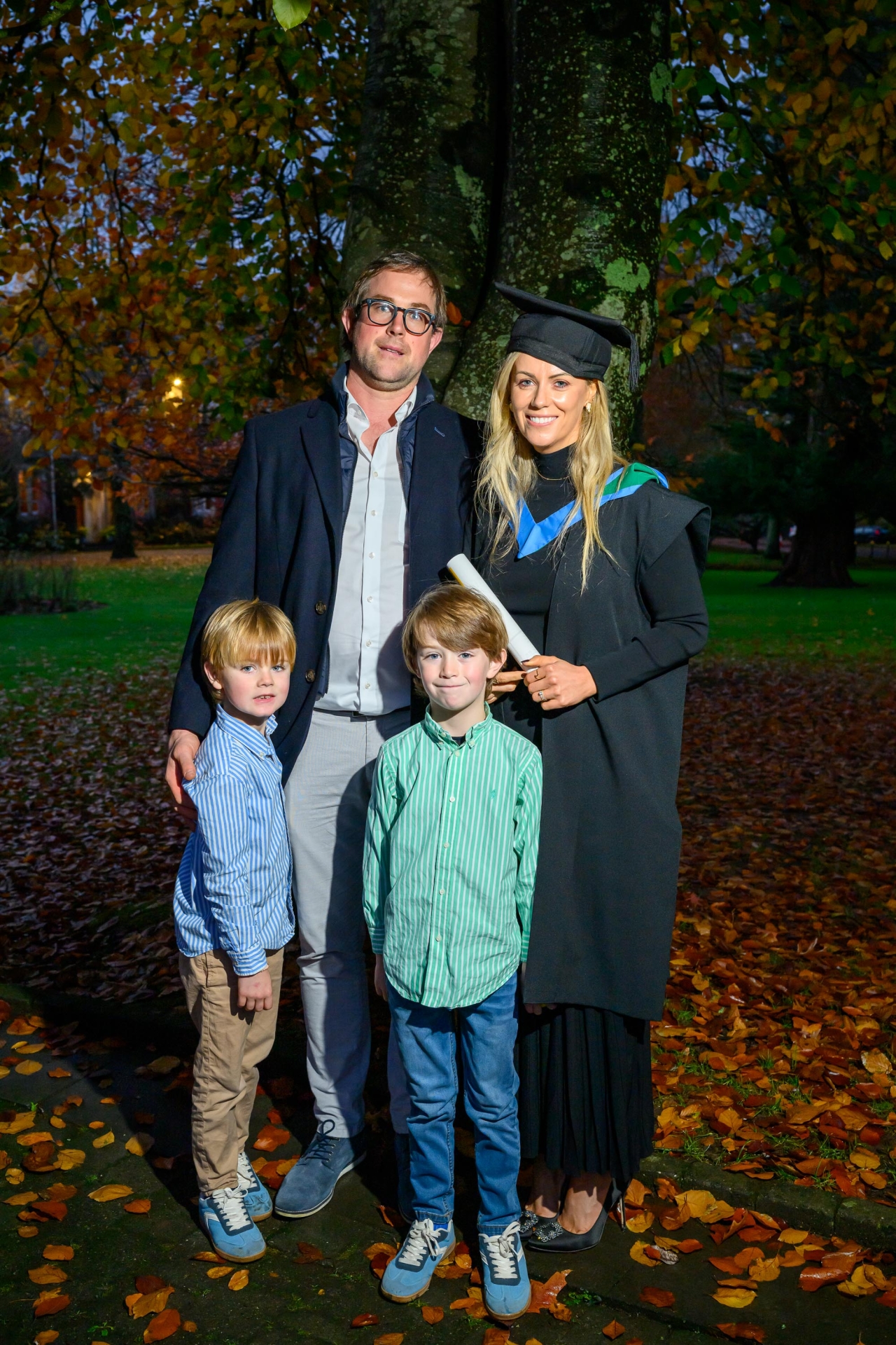 BELOW: Tirlán milk suppliers Sean and Róisín Cummins, from Inistioge, Co. Kilkenny with their children Fionn and Theo as the Tirlán and Baileys Sustainable Farming Academy class of 2024/2025 graduated from their Diploma in Environment, Sustainability, and Climate from University College Cork (UCC). PICTURE: John Allen