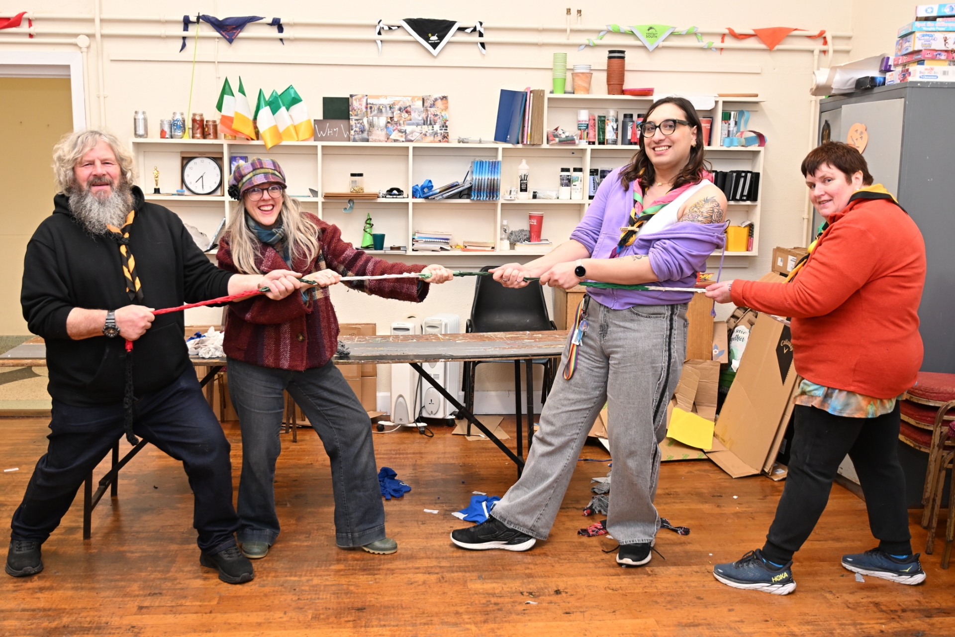 MaryBeth showed the scouts how to transform old t-shirts into yarn in order to make colourful skipping ropes, by cutting and weaving yarn with their hands.