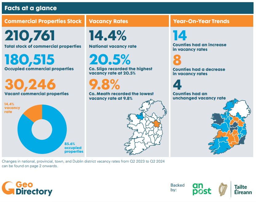 Commercial Vacancy Rates Report. This figure represents a decrease from the same period in 2023. The twice-yearly analysis, prepared by EY, found that the commercial vacancy in Kilkenny was lower than the national average of 14.4%.
