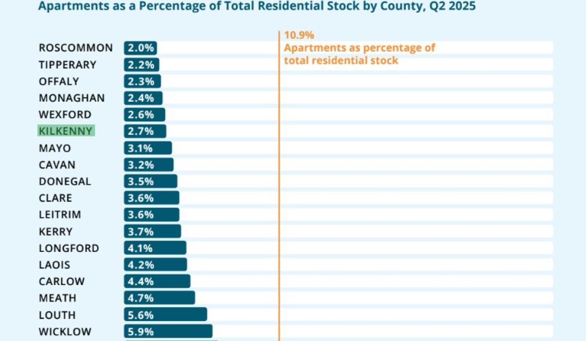 Apartments as a percentage of total residential stock. Kilkenny is among the lowest
