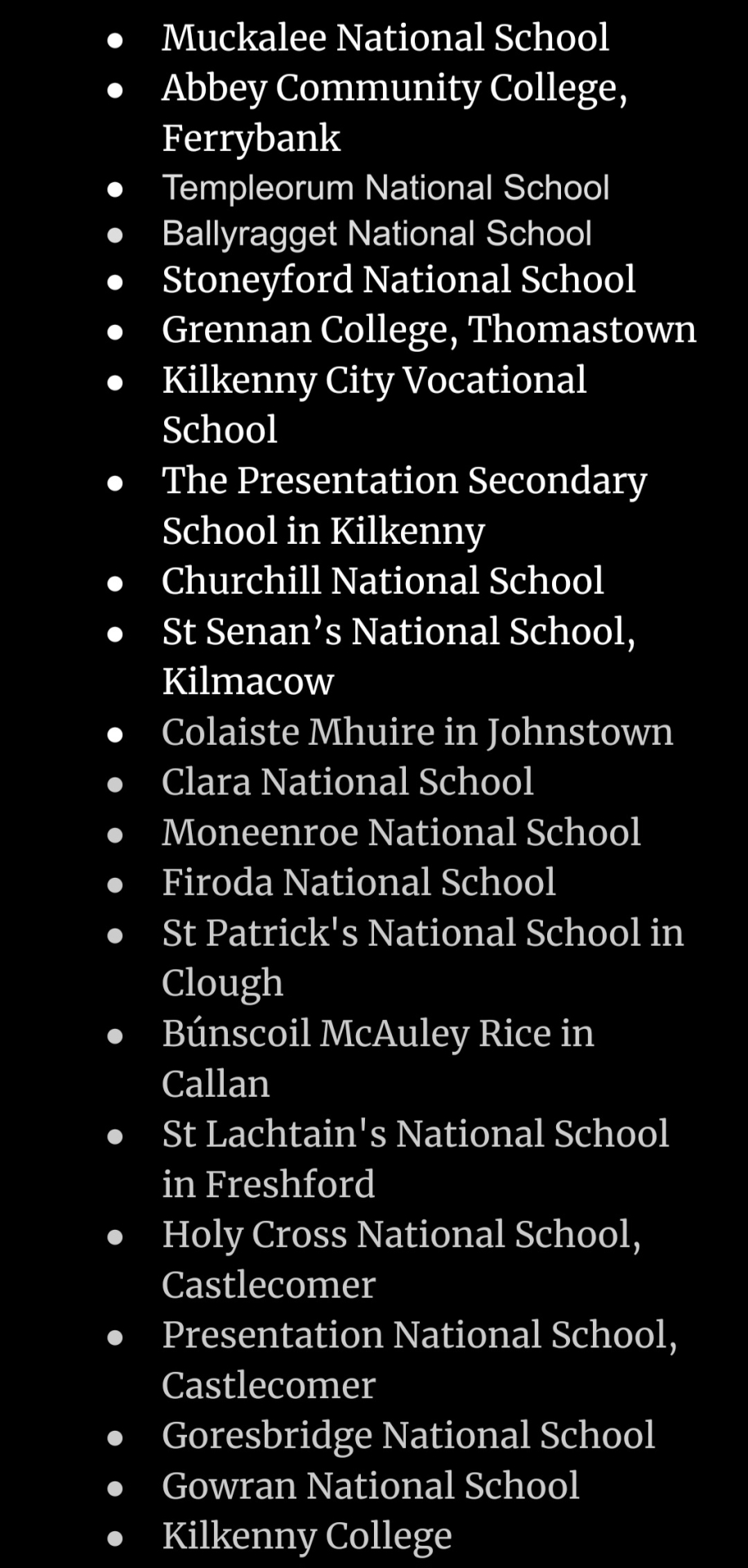 The number of Kilkenny schools who will close their doors on Monday, January 6 continues to grow as travelling conditions become increasingly dangerous for drivers and pedestrians.