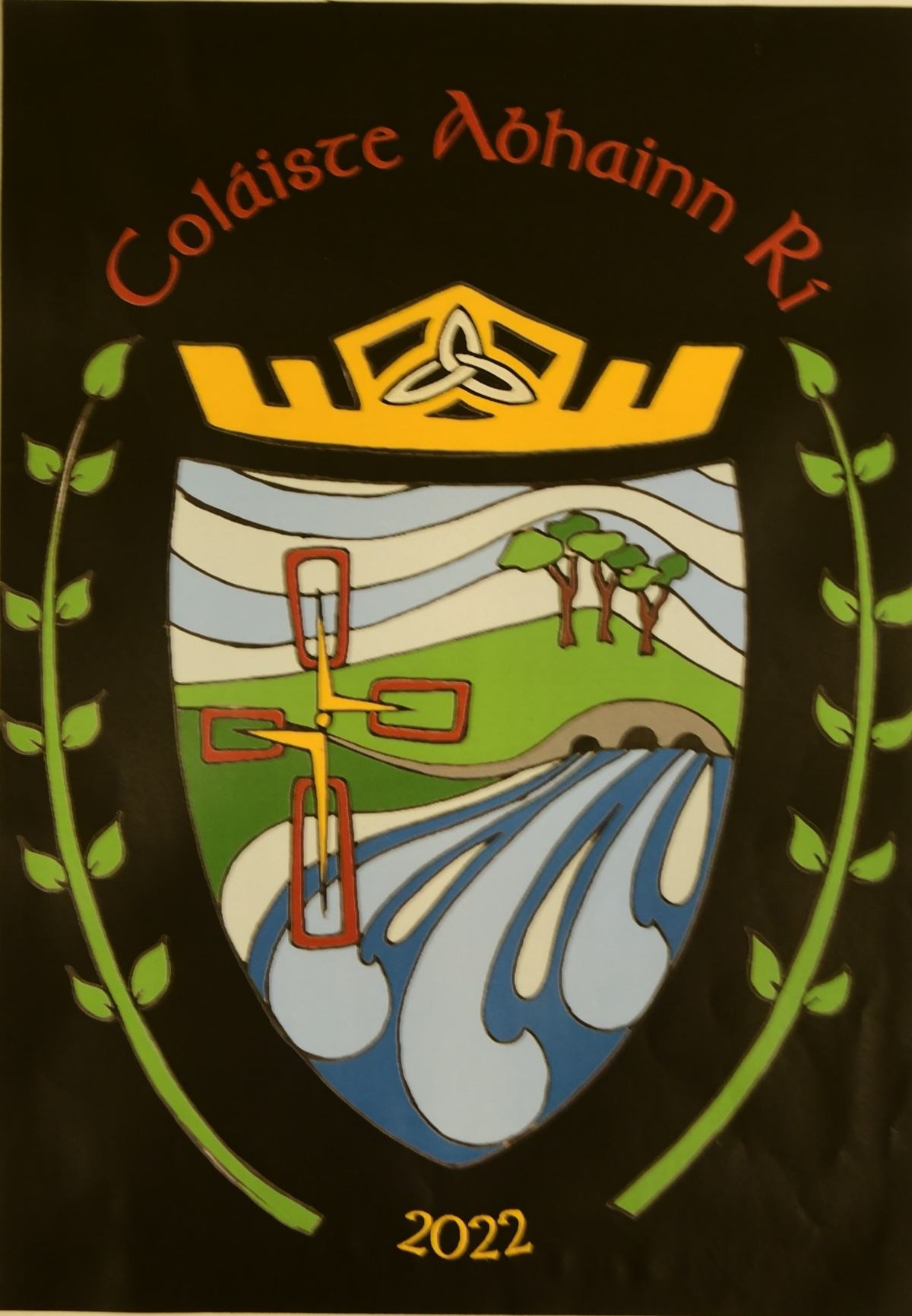 A newly designed cross, the Kings River, and the local landscape combine in the school crest for Coláiste Abhainn Rí. The search for a new crest began by inviting designs from the school community. From more than 100 competition entries four winners were - students Chloe Glennon (5th Year St.Brigids College), Caoimhe Kelly (1st Year St.Brigids College), Filip Merstein (2nd Year Colaiste Eamann Rís) and art teacher Joanne Bibby (Adult Entry).