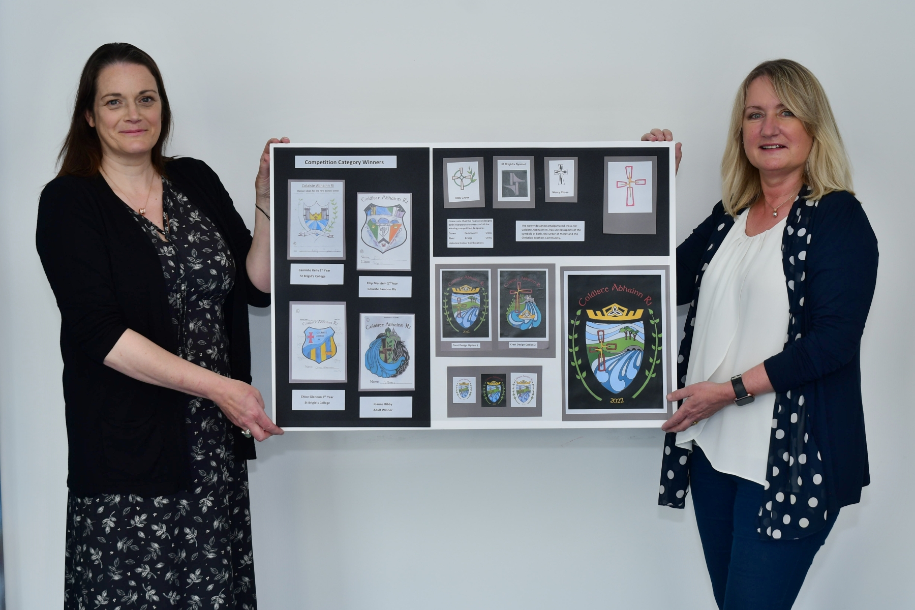 The expertise of the art teachers in both schools was called upon to bring the winning themes and images together. Joanne Bibby from Coláiste Eamann Rís and Joanna Sheehan from St Brigid’s College worked together to design the new crest. The unique cross they fused from the cross of the Christian Brothers, the cross of the Mercy Order and the St Brigid’s Cross.