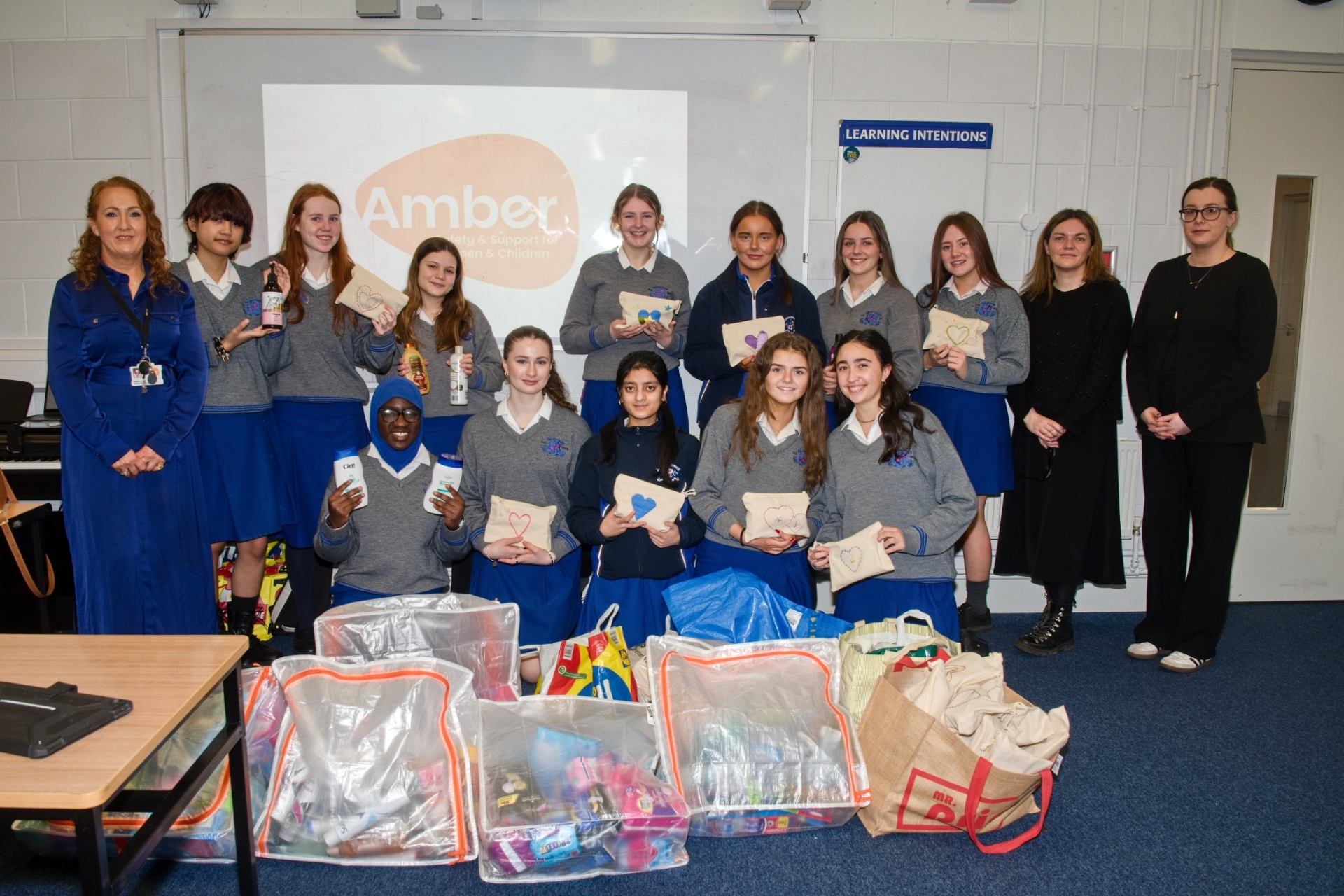 Students at Loreto Secondary School have presented handmade toiletry bags along with hygiene product donations to Amber Women’s Refuge.