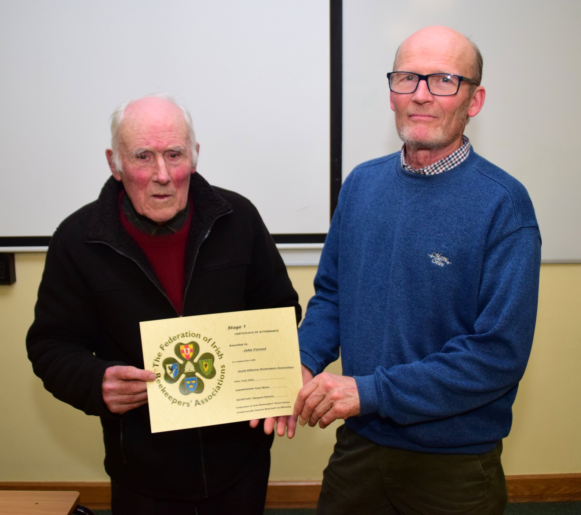 Condolences were offered to the family of John Gantley on his very sad passing. John was a dedicated member of South Kilkenny Beekeepers Association for many years and will be sadly missed.