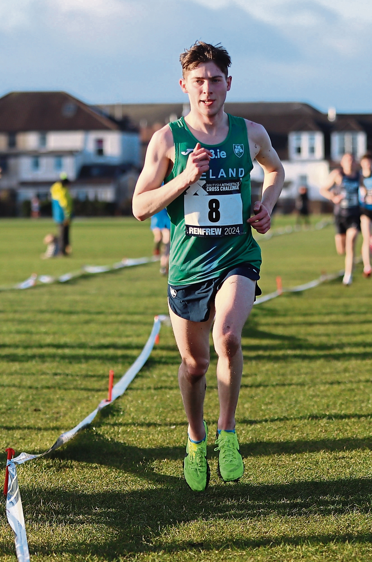 St Senan’s athlete David Williams (bib #22) finished fourth in the under-20 Celtic International race in Scotland, helping Ireland to take team gold in Renfrew. Picture: Perri Williams