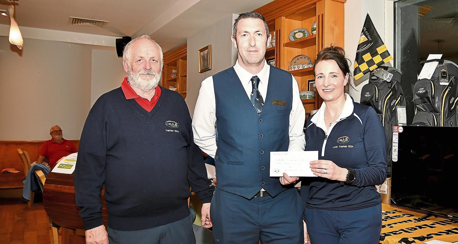 Sean Kelly, Newpark Hotel, receives his prize for second place from Lucy Condon, Lady Captain Gowran Park and Seamus Fitzpatrick, Men’s Captain