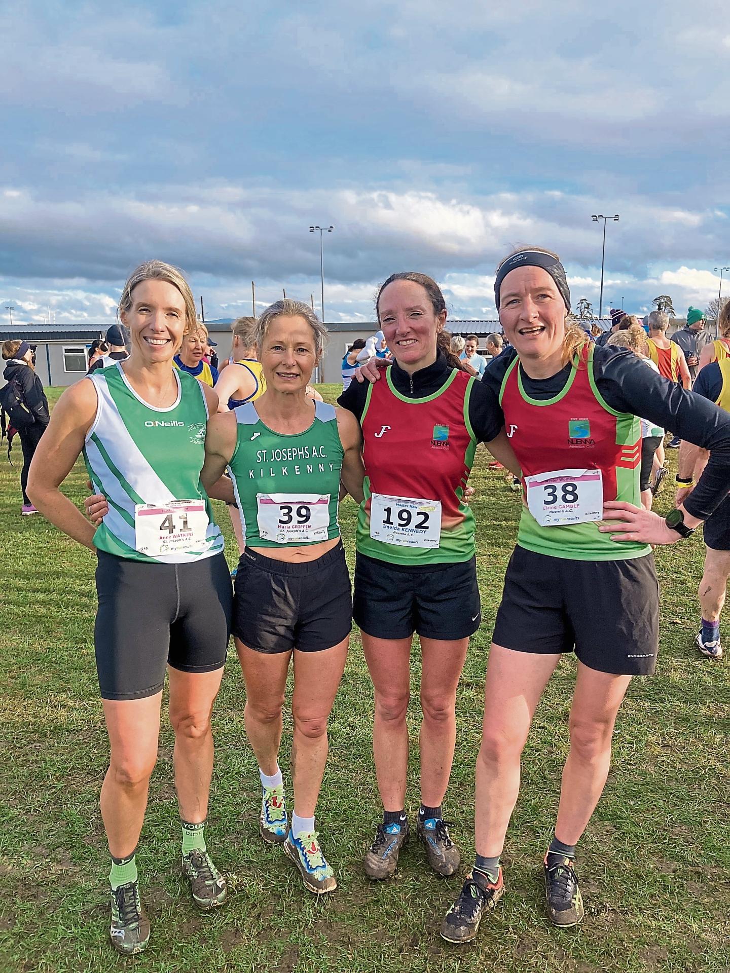 Anne Watkins (St Joseph’s), Maria Griffin (St Joseph’s), Imelda Kennedy (Nuenna) and Elaine Gamble (Nuenna) ran well at the Leinster Cross Country in Carlow on Sunday