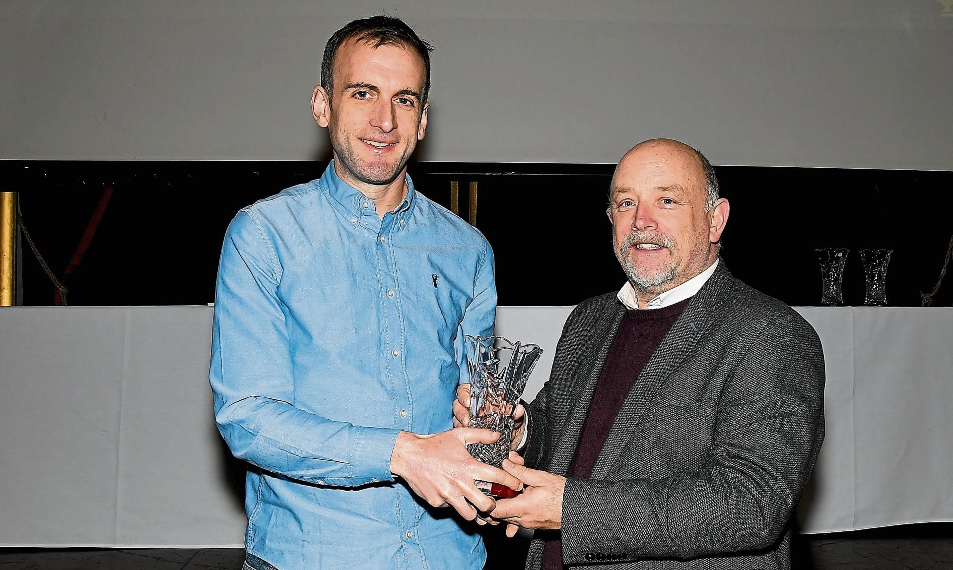 James Kelly (Castlecomer) receiving the Road Athlete Award at the Kilkenny AAI Awards