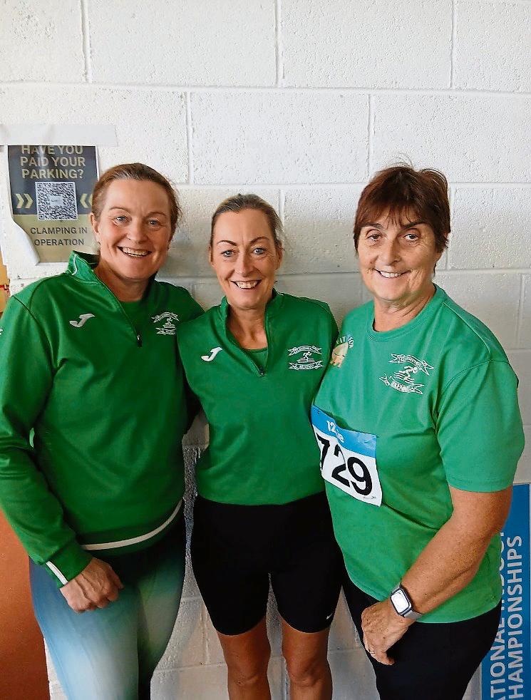 St Joseph’s athletes Verena Fenlon, Maggie Helen O’Connor and Mary Breen at the National Masters Championships in Athlone