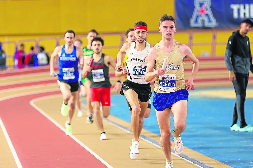 There was exciting news from the AAC Indoor Championships in Cincinnati as Shay McEvoy was part of the Tulsa quartet that set a meet record in the distance medley relay. In doing so, they set the third fastest time in the school’s history.