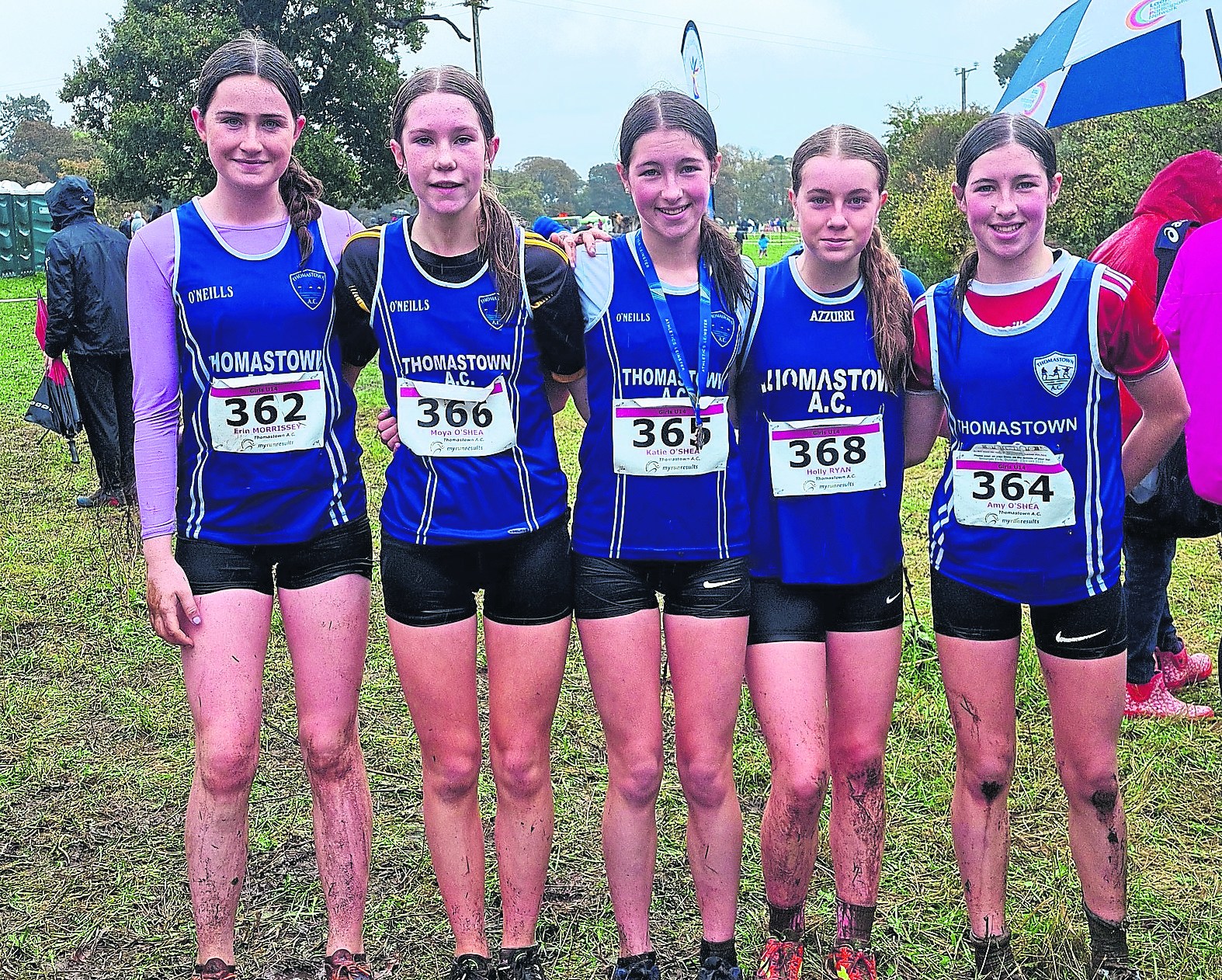 Thomastown, winners of the club team gold in the girls’ under-14 race at the Leinster cross-country championships in Bellurgan Park