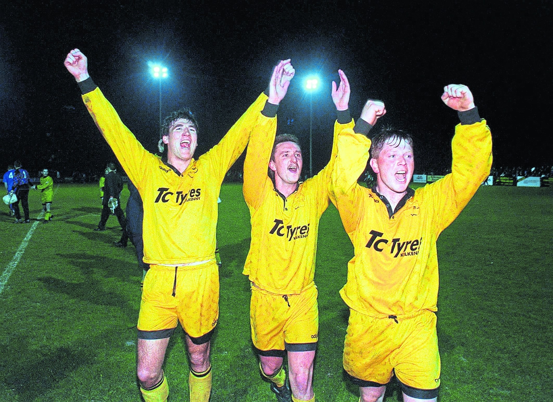 The good old days - Kilkenny City players Brendan Rea, Pascal Keane and Richie Hall celebrate promotion in 1997