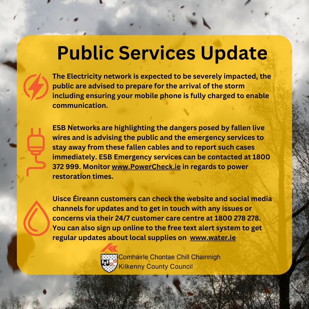 Kilkenny County Council have released a number of emergency helplines for local people in need of assistance during Storm Éowyn.