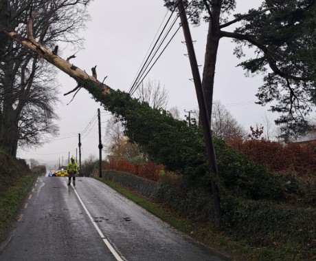 Emergency services are continuing to deal with a fallen tree on the R703 at Columbkille near Thomastown in County Kilkenny.