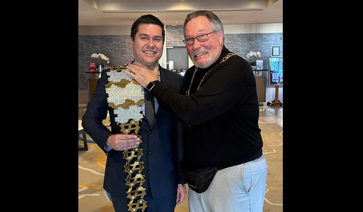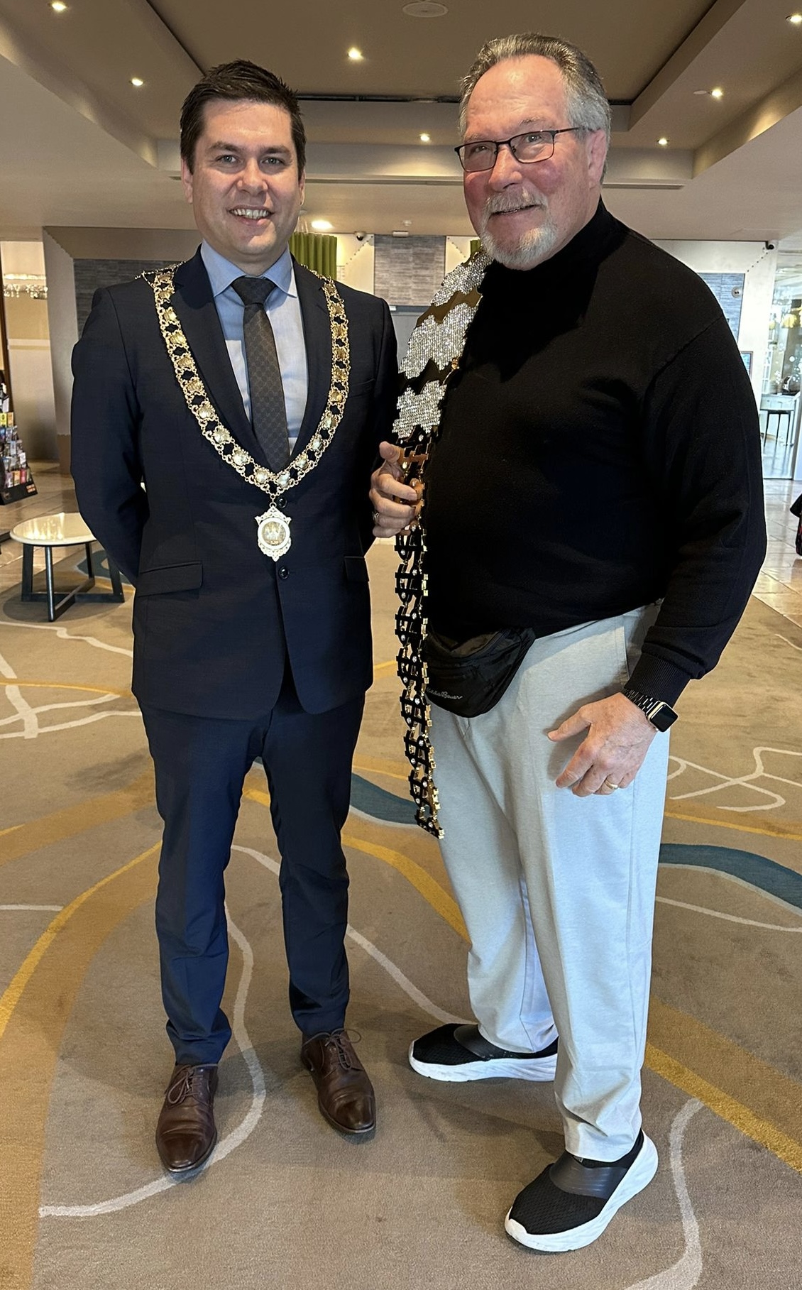 'He took a shine to the mayor's chain as he thought it would go well with his Million Dollar Belt so we almost had a scuffle over that, but thankfully he let me keep the chain,' jokes Mayor Andrew McGuinness