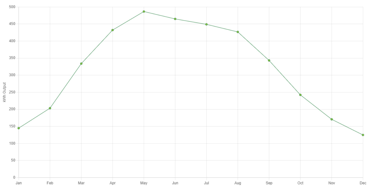 The chart below shows the solar output, by month, for a 4kWp system installed in Kilkenny City.