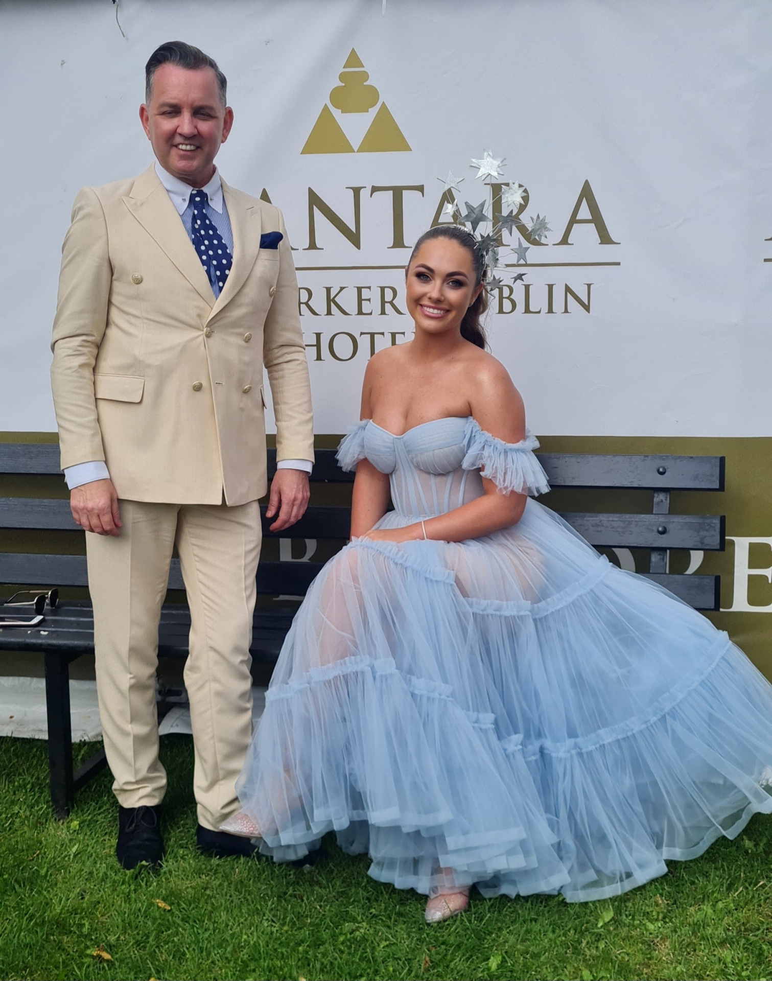 Chelsea Farrell (right) from County Louth wore a head-piece designed by Kilkenny designer Siobhan Daly