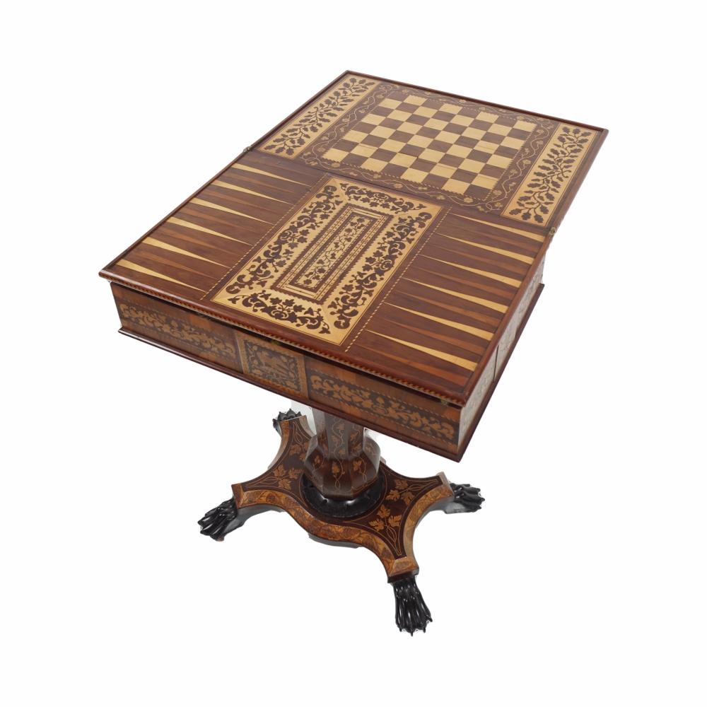 Lot 1006 - Killarney yew and arbutus games table has an estimate of €8,000 to €12,000