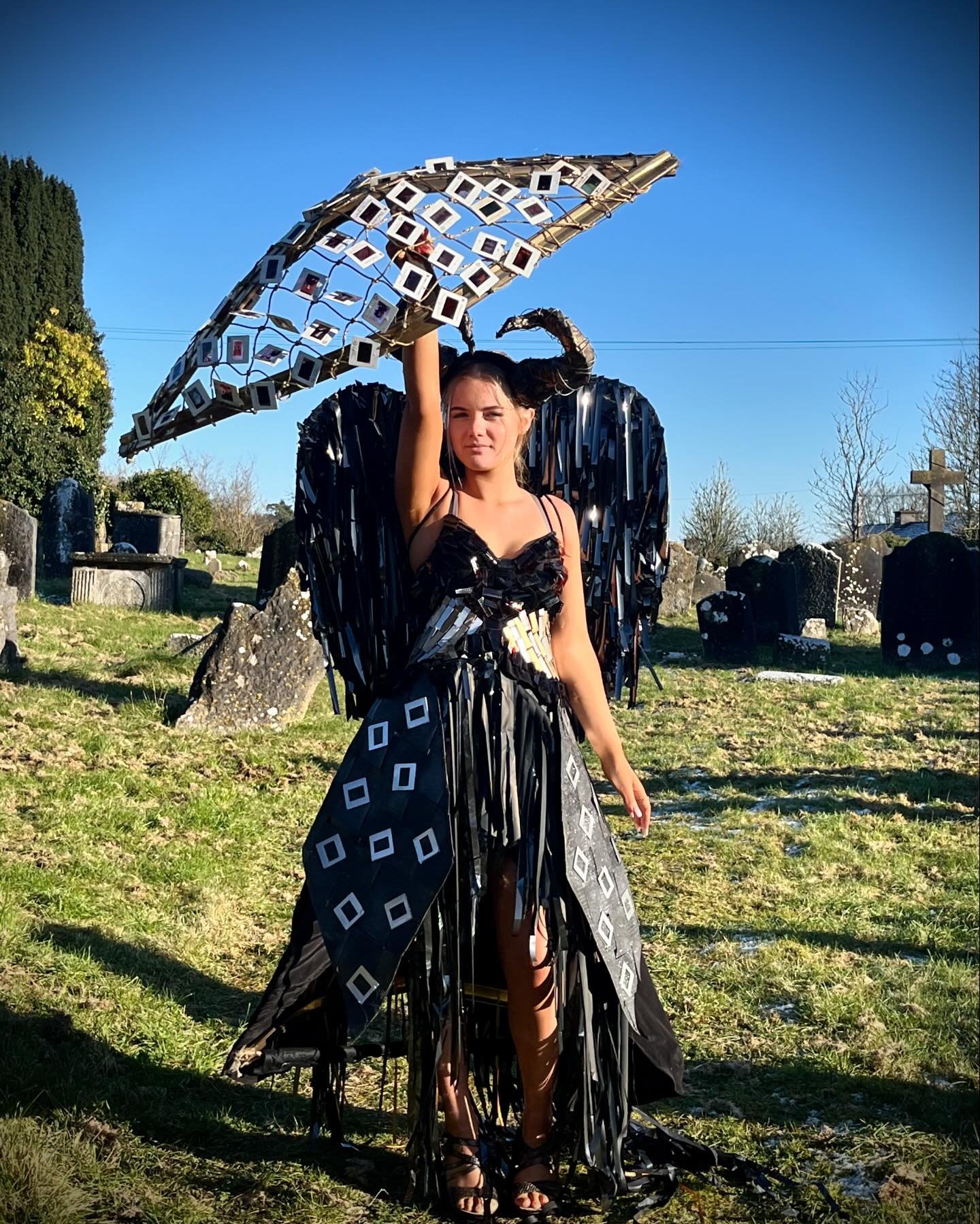 Well done to Ava, Ella & Tallia. Inspired by the iconic Disney character Maleficent, this avant-garde masterpiece fuses gothic allure with the forgotten treasures of the film industry.
