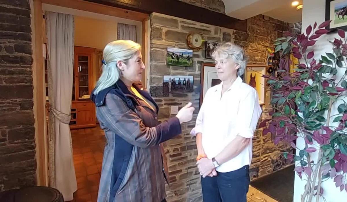 Siobhan Donohoe chatting to Jackie Mullins at the stable tour