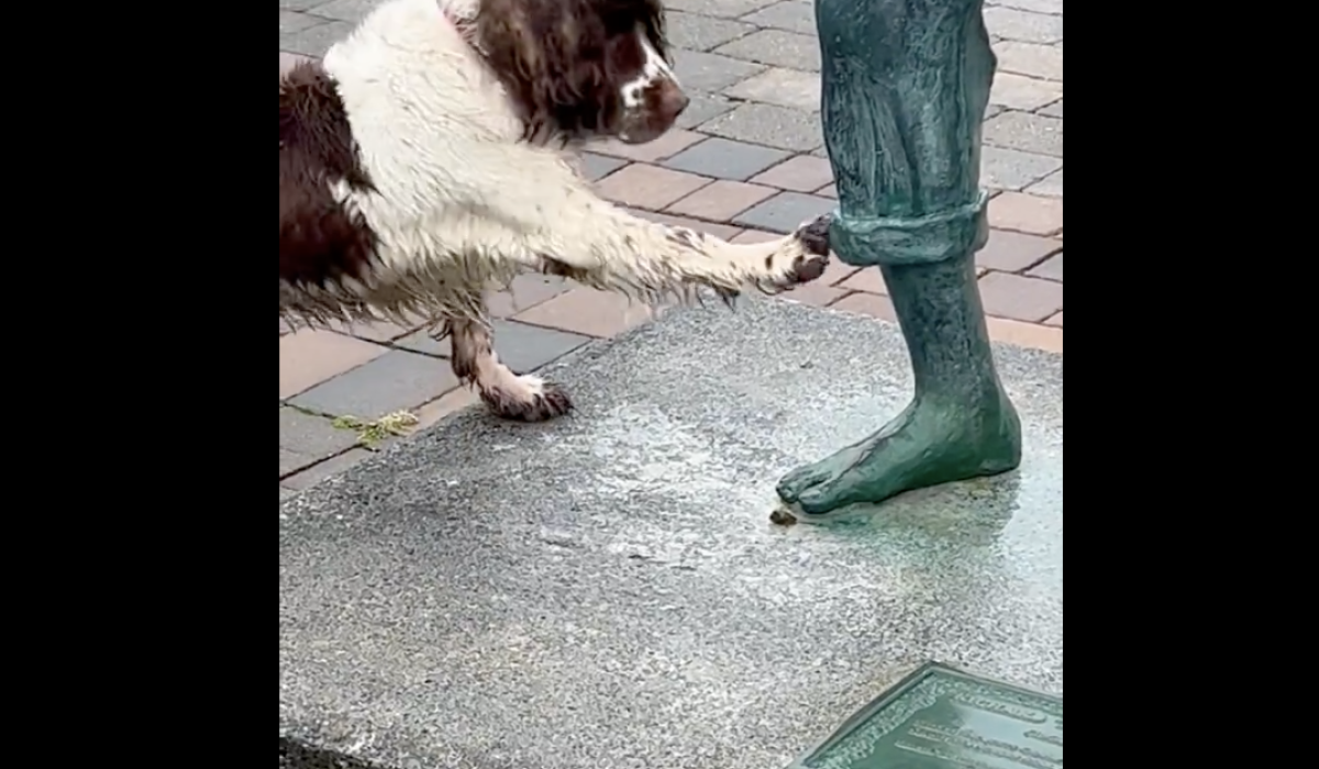The Springer Spaniel was captured on video playing with a statute of Richard Harris, the Limerick actor best known for playing Dumbledore in the Harry Potter saga.