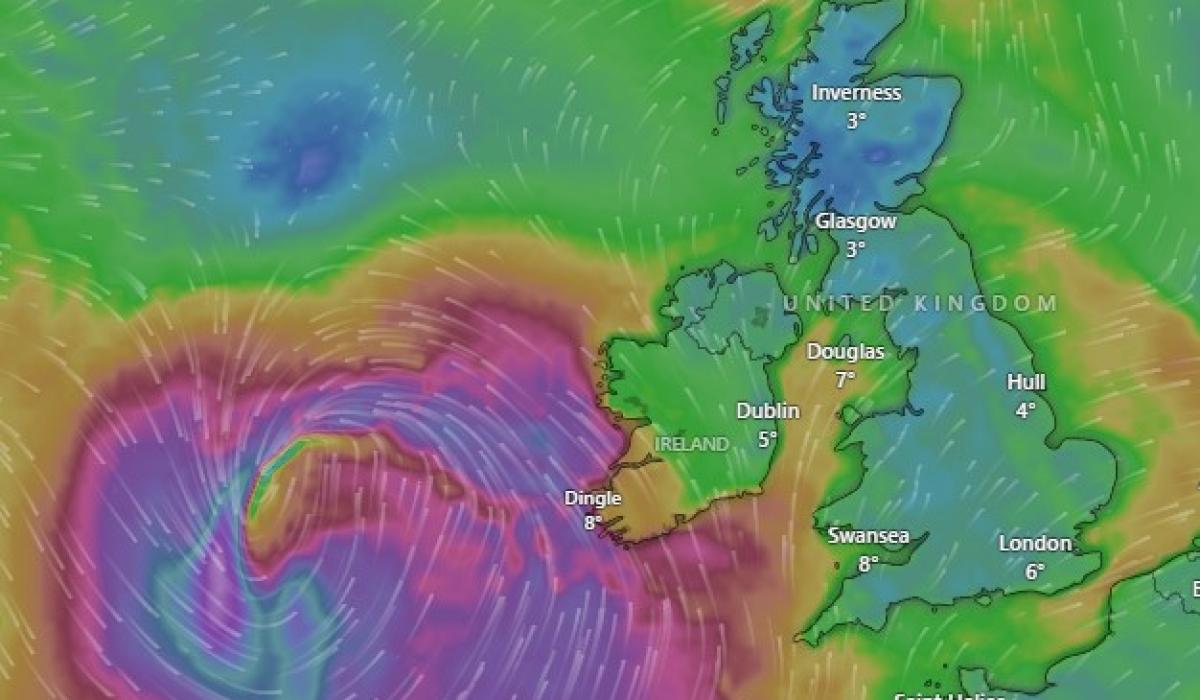 You can track Storm Eowyn as it cross the Atlantic Ocean towards Ireland on the viewer above. Click/tap play on the video and you can zoom in and out using the + and - in the top corner.